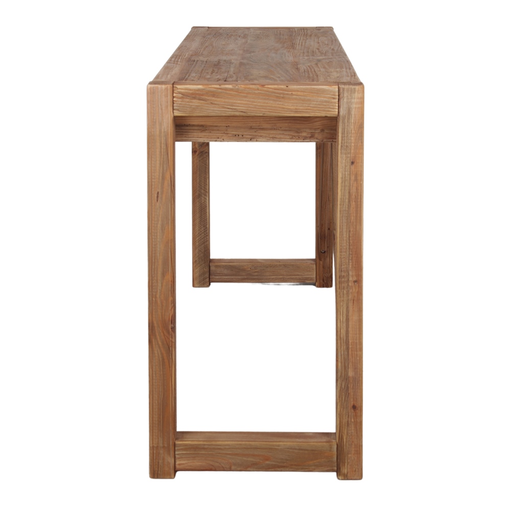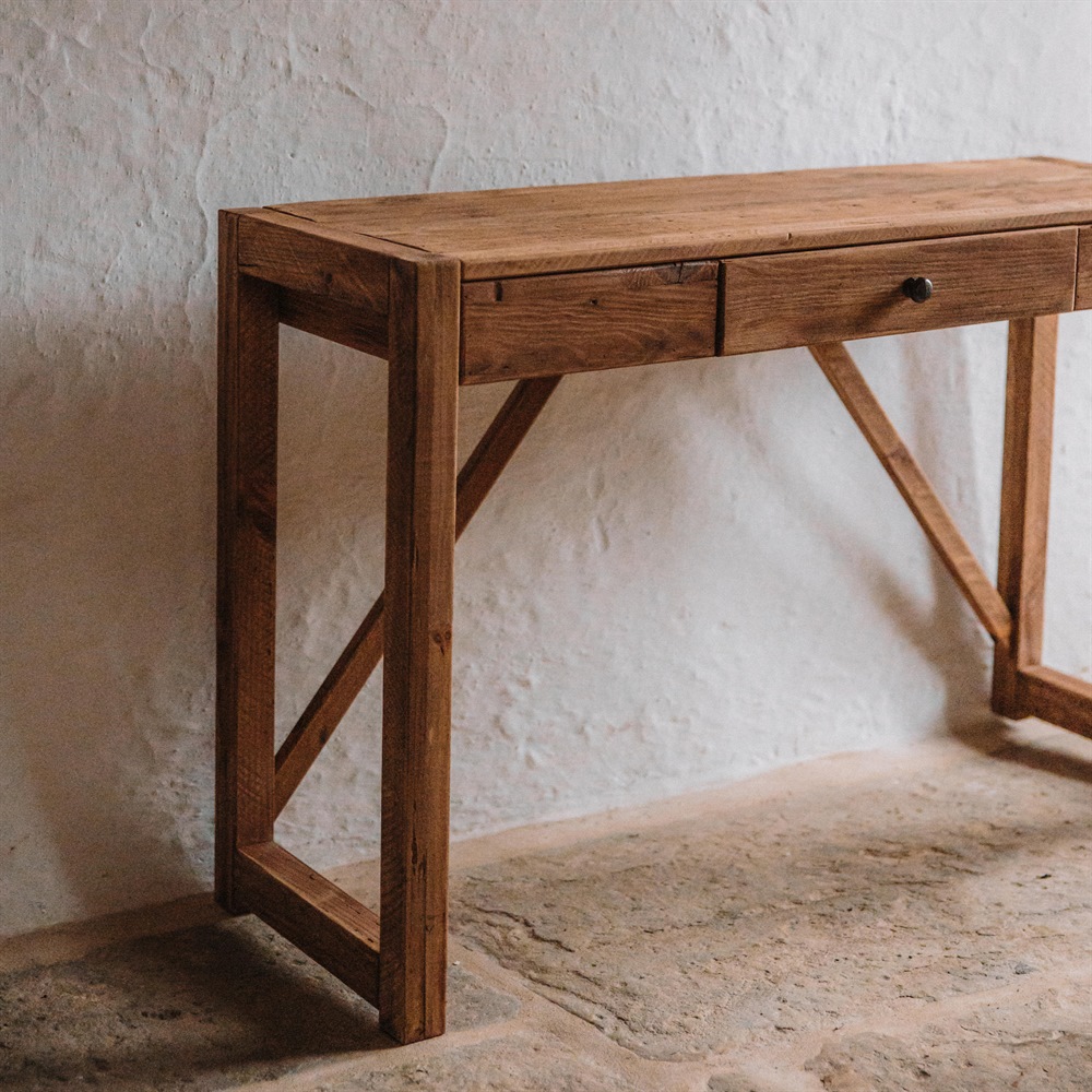 Console – bureau en bois de pin massif recyclé avec un tiroir frontal.