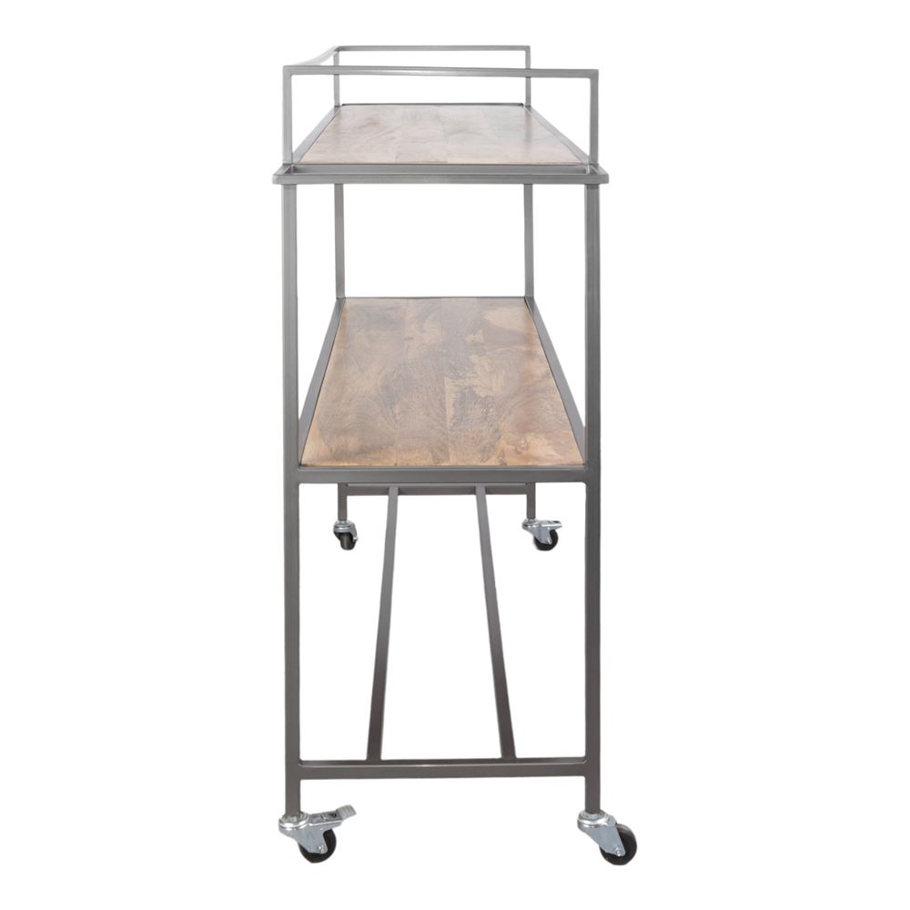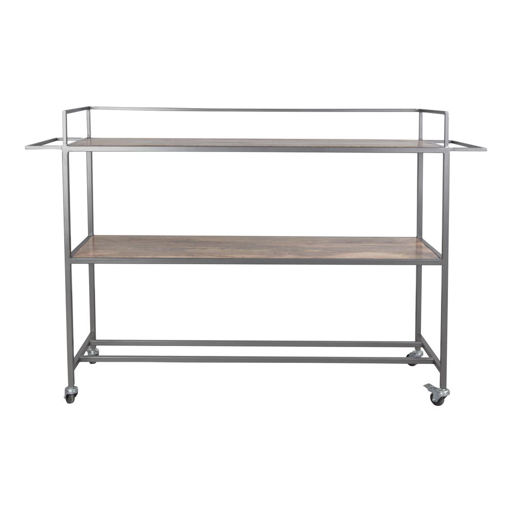 Chariot en métal et en bois, de style industriel. Chariot avec structure tubulaire en acier et étagères en bois.