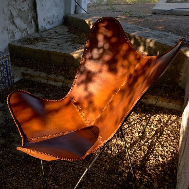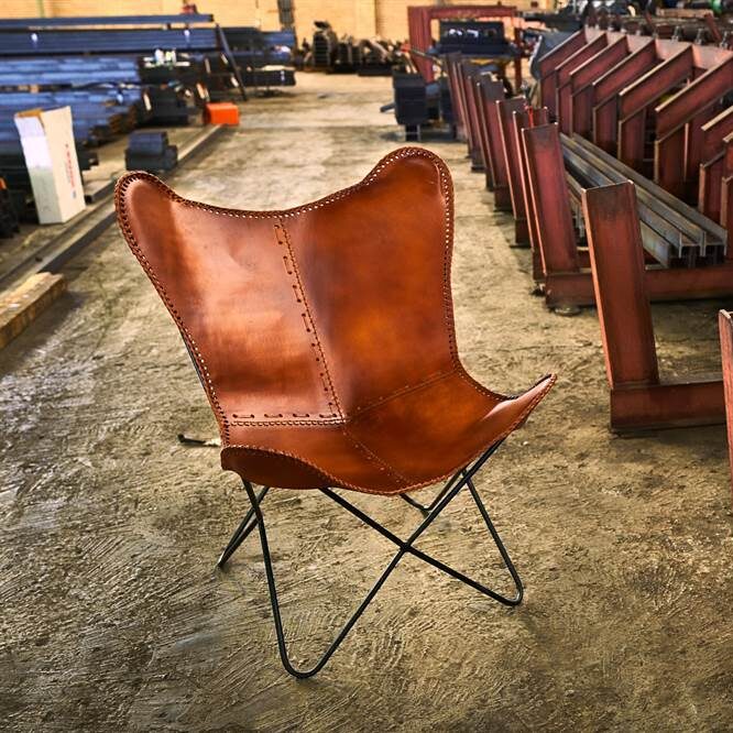 FAUTEUIL EN CUIR BUTTERFLY CARAMEL