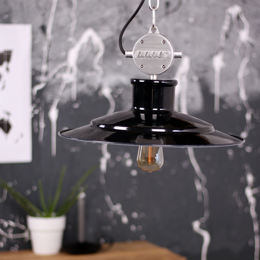 Le plafonnier Baron est une lampe de style industriel, fabriquée en métal peint en noir. Avec une chaîne pour le suspendre, il est doté d’un style unique, parfait pour tout espace de style vintage ou industriel.