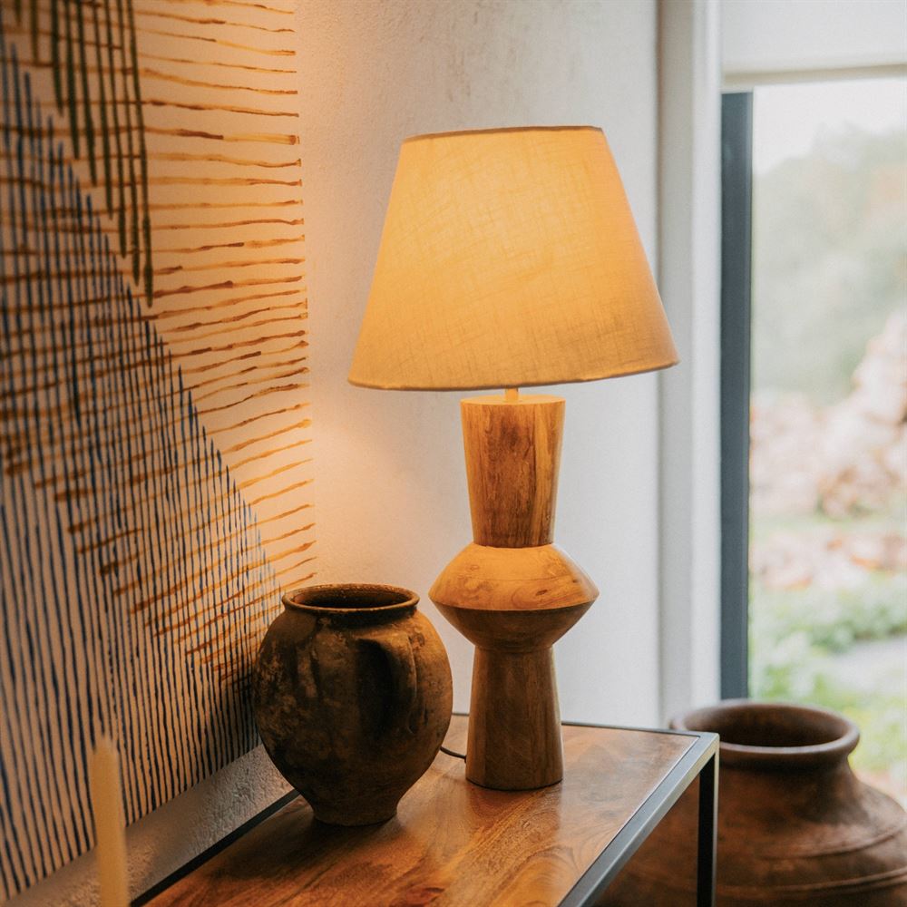 La lampe de table Temuco est une pièce exquise qui allie élégance et rusticité en parfaite harmonie. Fabriquée en bois tropical de haute qualité, cette lampe se distingue par sa beauté naturelle et son savoir-faire méticuleux. La base de la lampe est habilement tournée, créant une forme élégante et sophistiquée qui capture l’essence du bois tropical. Sa finition polie met en valeur le grain unique du bois et lui donne un aspect lisse et brillant.
