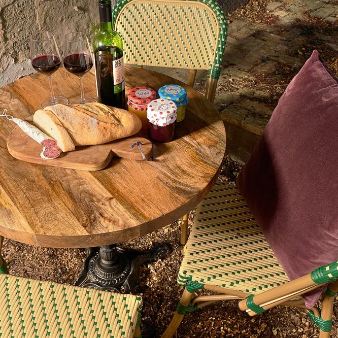 Le plateau en bois DELHI est en bois de manguier naturel. Ce plateau se distingue par sa solidité, sa durabilité et le grain de son bois. Parfait pour les intérieurs de style exotique et tropical, il est idéal pour les tables de salle à manger et peut être utilisé aussi bien dans un restaurant qu’à la maison. Pour associer ce plateau, nous avons les structures et les pieds de table qu’il vous faut.