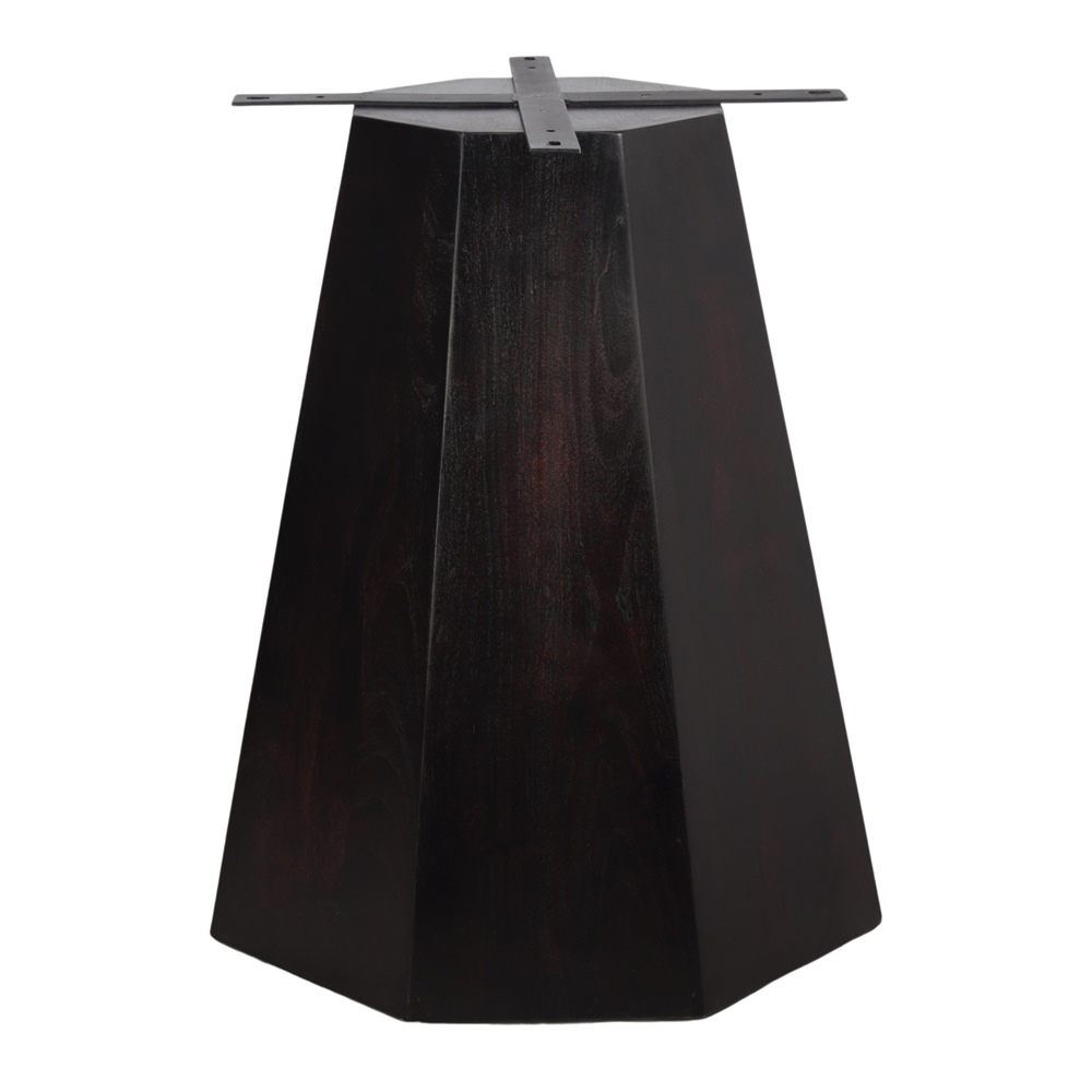 Structure pour table avec pied centrale fabriquée en bois d’acacia avec base hexagonale.