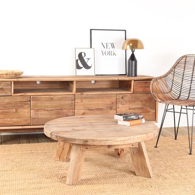 Cette table basse en bois de sapin trouvera parfaitement sa place dans votre salon. Entièrement en bois, cette table basse adopte un design sobre et intemporel. Ce produit est composé à partir de bois récupéré. Ce système permet d’offrir une deuxième vie à la matière première.