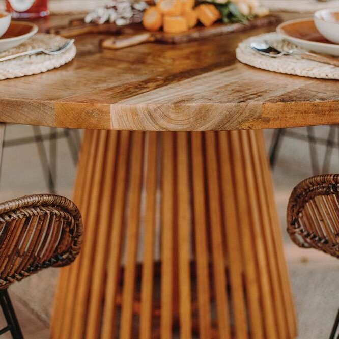 Notre table en bois SOLOMON est de un style Scandinave contemporain. La structure de la table est en bois d’acacia, en « baguettes », ce qui lui donne une esthétique moderne et élégante. Idéale pour une table de salle à manger, elle est également parfaite pour un restaurant. Résistante et solide, fabriquée avec du bois de manguier, un bois très dur et compact, ce qui lui confère les caractéristiques parfaites pour un usage professionnel.