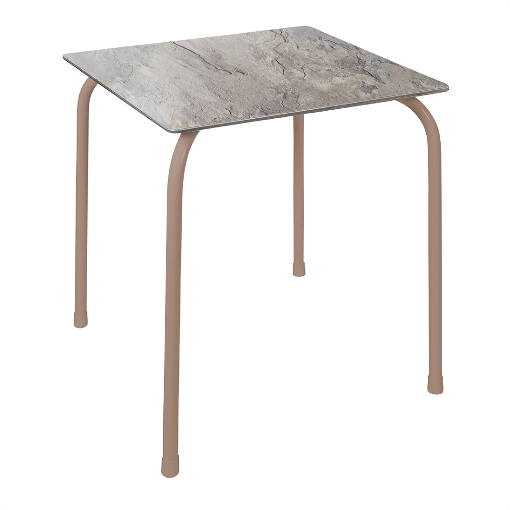 Table carrée empilable adaptée pour l’intérieur et pour l’extérieur.