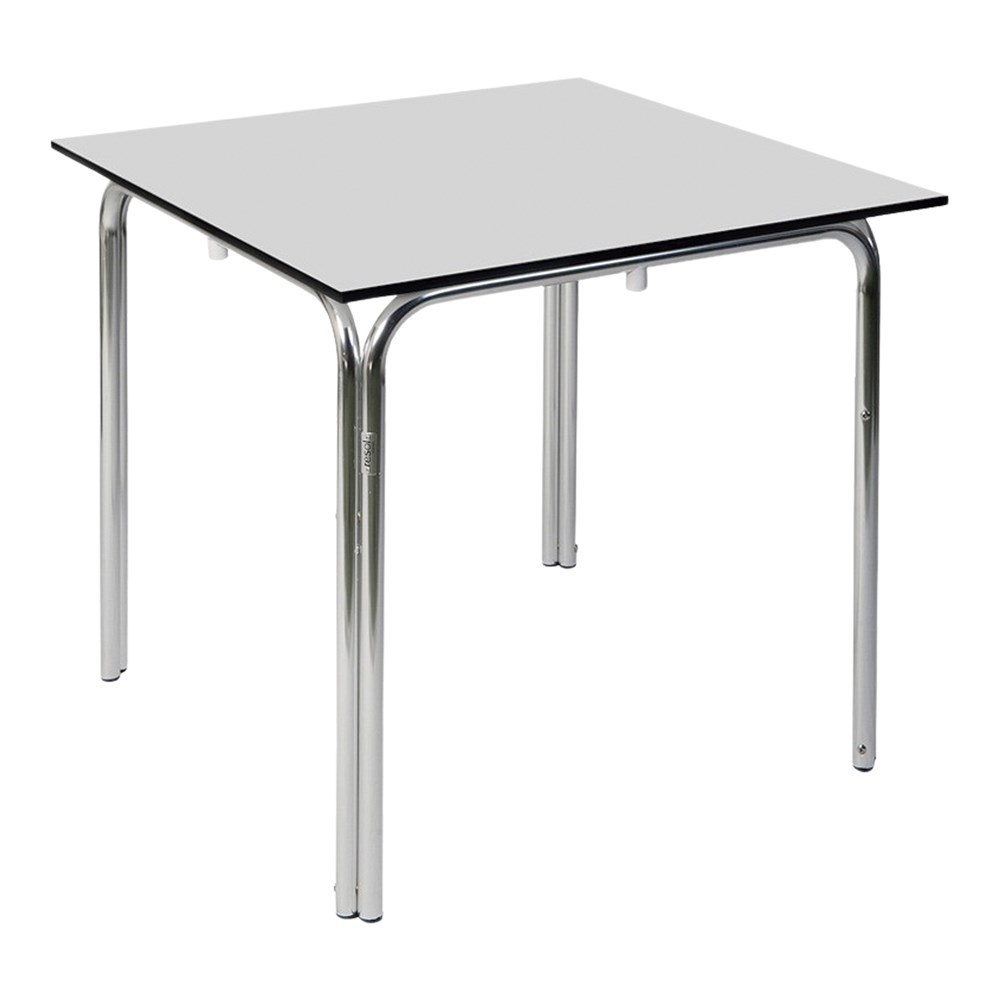 Structure tubulaire en aluminium anodisé brillant et plateau en phénolique compacte.
