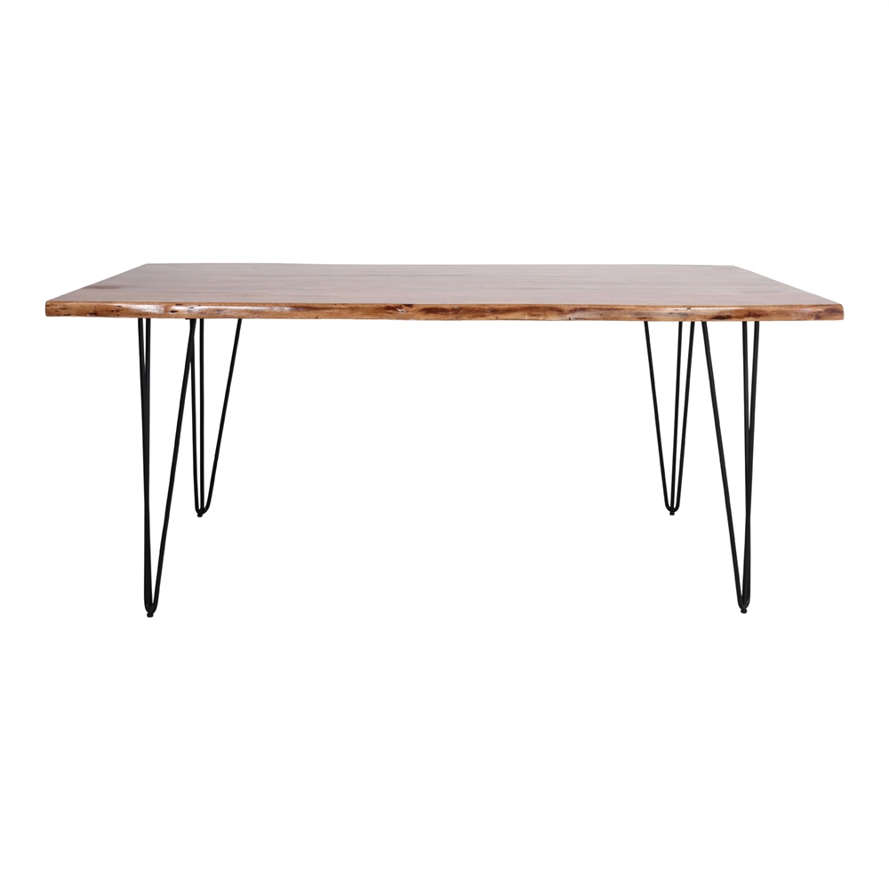 La table de salle à manger de style industriel Bombay est fabriquée en bois d’acacia massif. Elle vous séduira par son bois aux bords irréguliers, qui lui donne une touche organique. Cette table trouvera sans aucun doute sa place dans votre intérieur de style Rustique Chic. Le mobilier rustique rencontre le design contemporain pour créer cette collection aux lignes épurées et réconfortantes. Son secret? La couleur naturelle du bois, dense et chaleureuse. Pour un intérieur moderne, associez votre table de salle à manger avec des matériaux plus industriels comme le métal ou le béton.