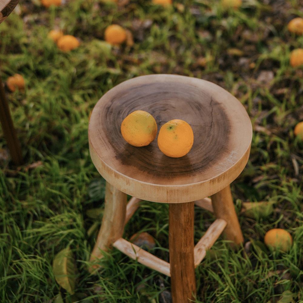 Le tabouret bas en bois Manao est un meuble artisanal entièrement réalisé à la main avec du bois tropical. Ce tabouret bas en bois s’intégrera parfaitement dans les intérieurs de style rustique, nordique et méditerranéen, apportant une touche organique, naturelle et cosy.