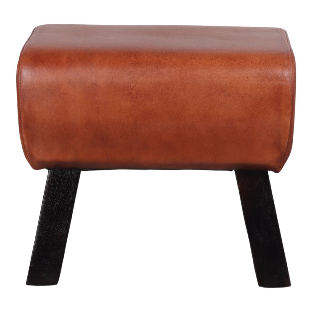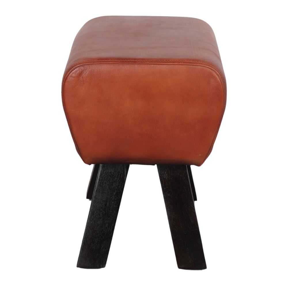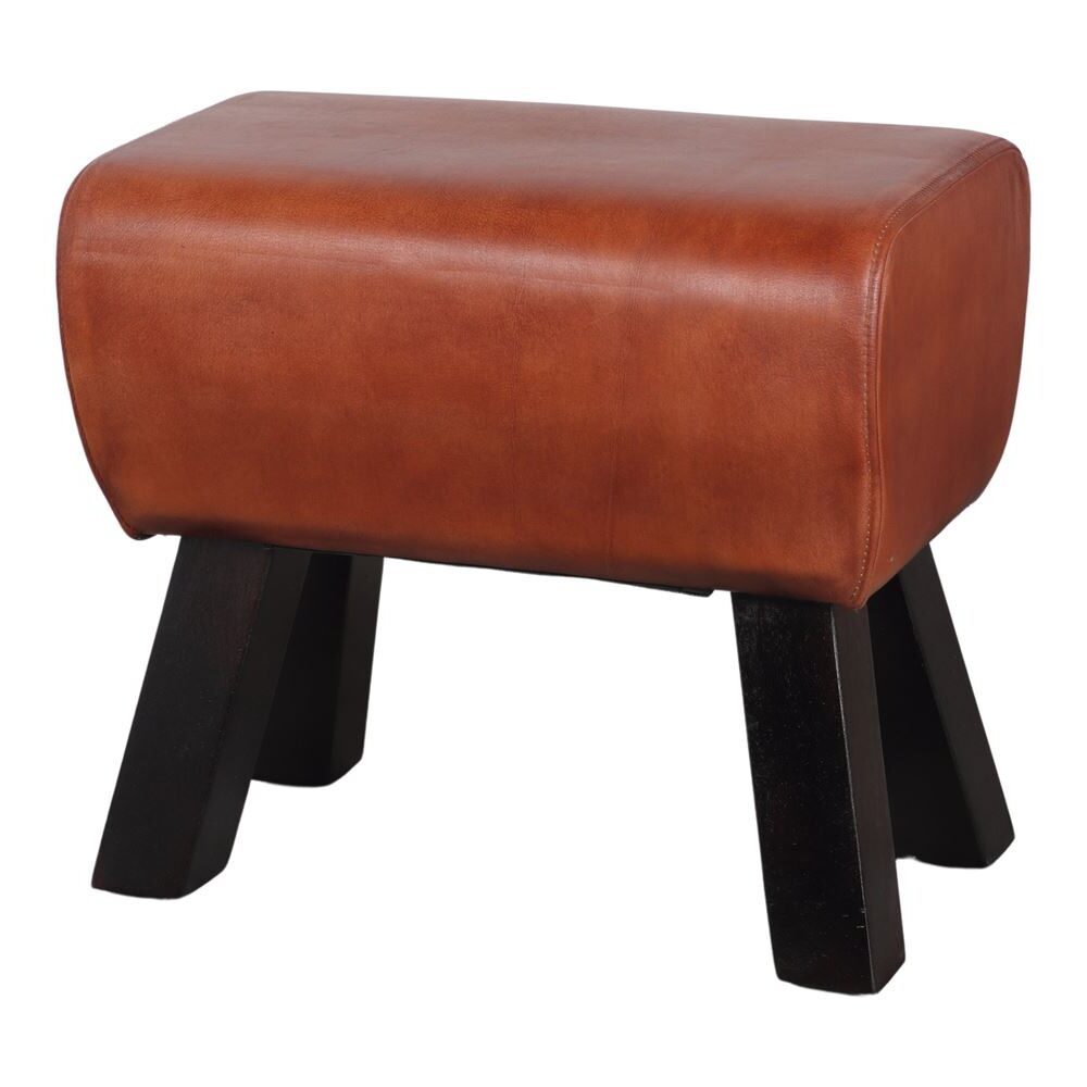 Tabouret bas en cuir Donati, de style rustique et vintage.