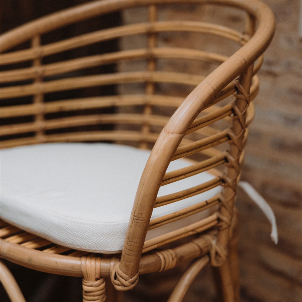 Naturel : 52x46x101 cm | Hauteur d’assise : 75 cm (dont coussin 5 cm) | Accoudoirs : 89 à 97 cm