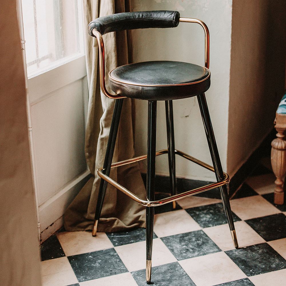 TABOURET HAUT EN MÉTAL ET CUIR GATIMBER