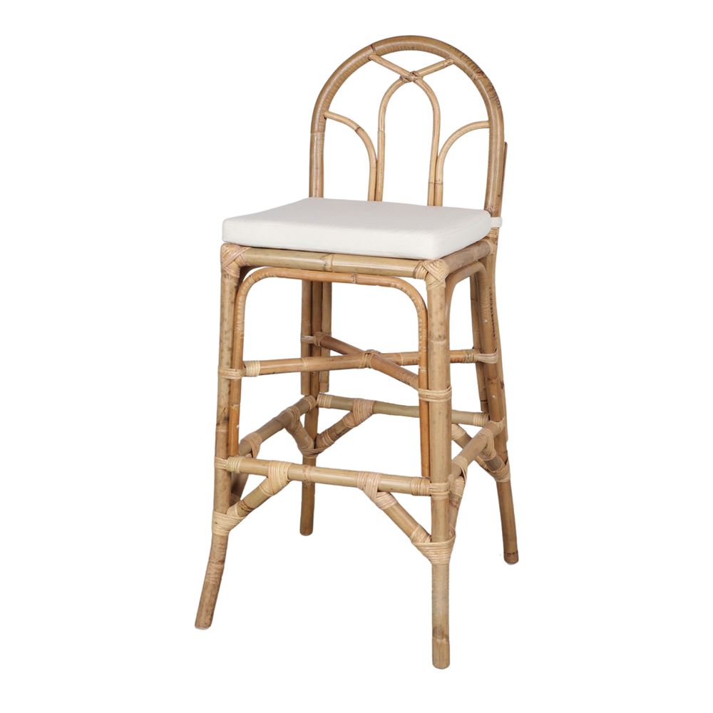 Tabouret haut en rotin Avanta, style méditerranéen.
