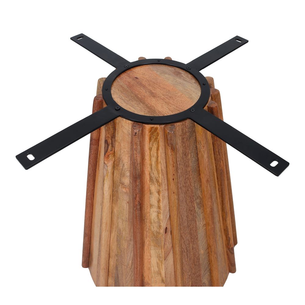 La structure pour table Olavi est un choix idéal pour ceux qui recherchent un design fonctionnel à caractère méditerranéen. Fabriquée en bois de manguier, ce bois se distingue par son veinage naturel et la chaleur apportée par sa finition en vernis naturel, qui protège le matériau sans en masquer la beauté. Cette structure pour table, aux lignes simples et robustes, s’intègre parfaitement dans les environnements détendus, lumineux et naturels, si caractéristiques du style méditerranéen. Sa structure est conçue pour être stable et polyvalente. Grâce à sa facilité de vissage, vous pouvez assembler votre propre table rapidement et facilement, en choisissant le plateau qui s’adapte le mieux à votre style. La structure pour table Olavi est compatible avec des plateaux d’un diamètre maximal de Ø130 cm, ce qui en fait une base idéale pour les tables de salles à manger et les espaces plus informels, tels que les cuisines ou les terrasses couvertes. La structure pour table Olavi est bien plus qu’un simple meuble: c’est une pièce de décoration à part entière. Sa présence apporte authenticité et fraîcheur, s’intégrant facilement dans des intérieurs basés sur des matériaux naturels, des couleurs claires et une décoration qui invite à la détente. Avec cette structure, vous pouvez personnaliser votre table sans renoncer à l’esthétique et à la qualité artisanale du bois de manguier.