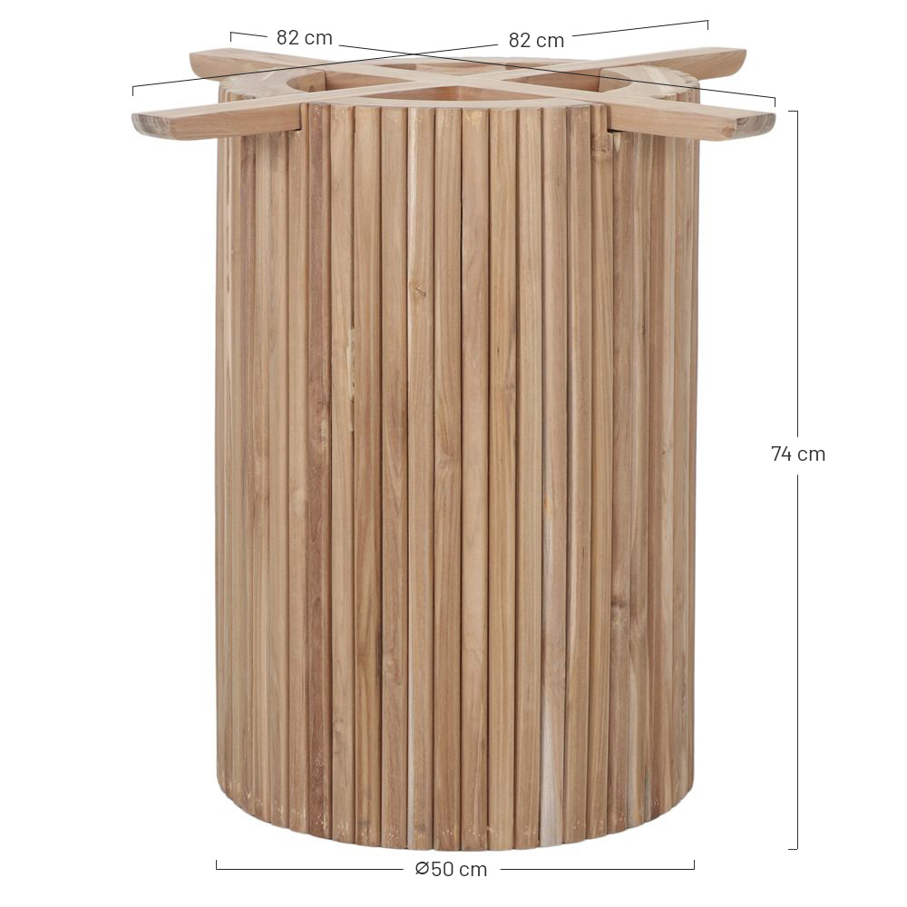 Structure pour table Shifra de style nordique, en bois de teck. Avec une base cylindrique et une traverse supérieure, elle est parfaite pour les plateaux en bois, idéale pour un restaurant comme pour la maison. De par sa fabrication entièrement artisanale, son bois peut présenter des marques et irrégularités, ce qui rend chaque pièce unique.