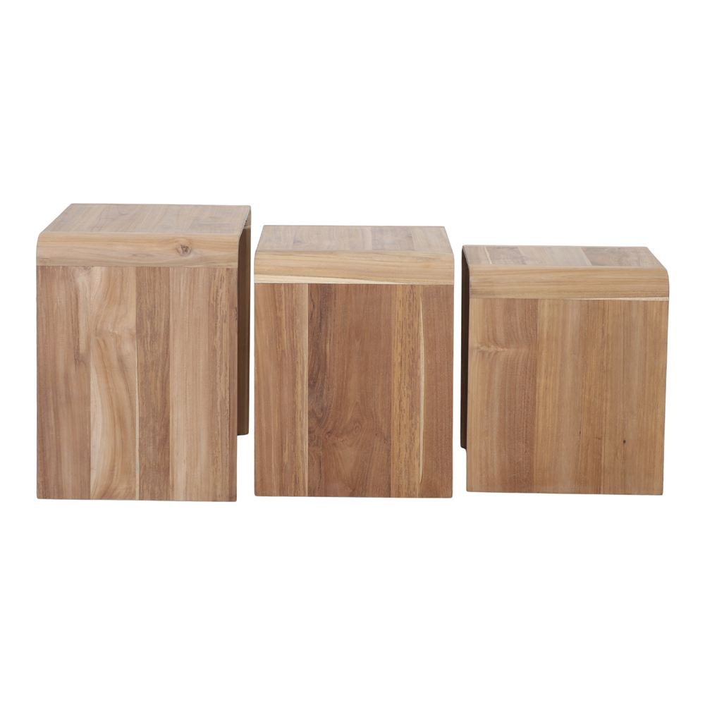 Ensemble de 3 modules empilables en bois de teck avec finition naturelle.