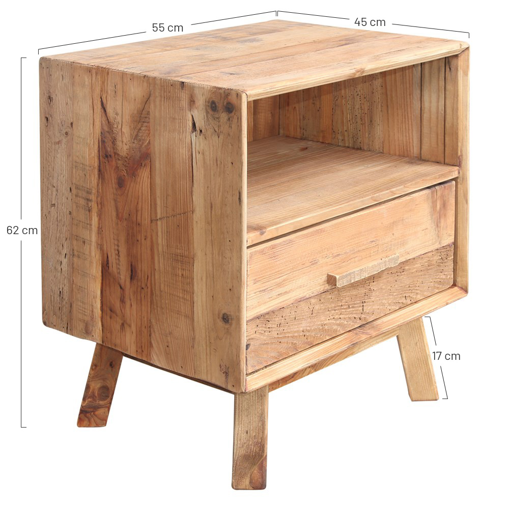 Fabriquée en bois de pin massif recyclé avec 1 tiroir.