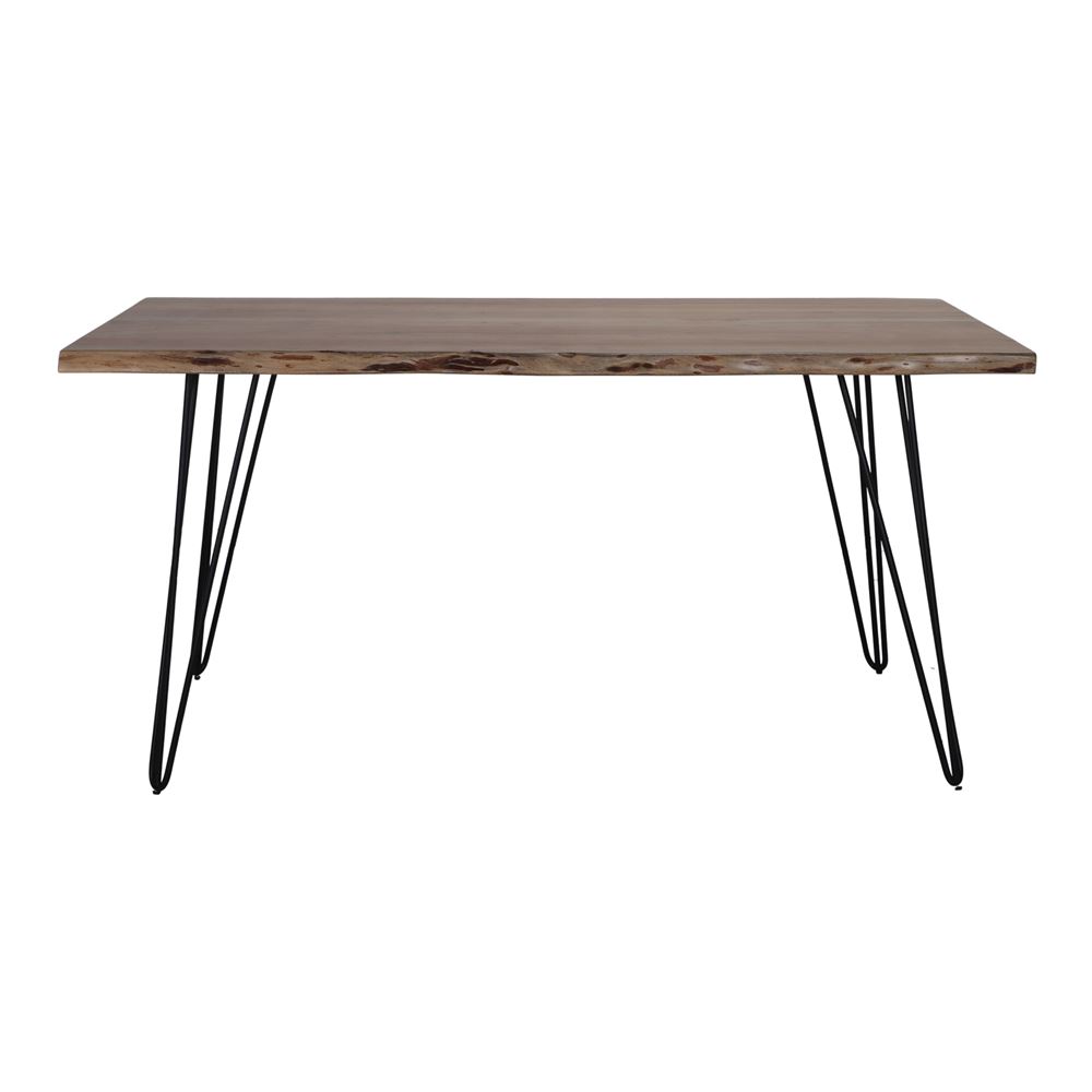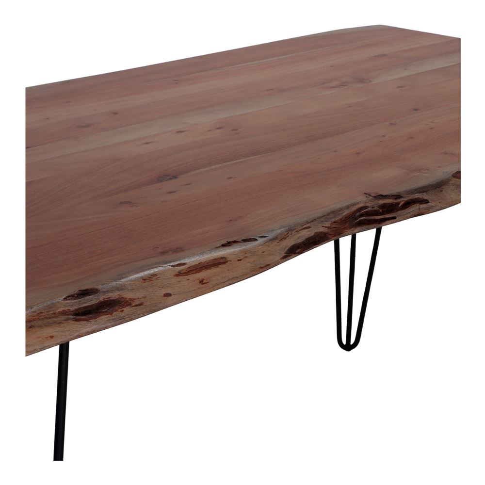 La table de salle à manger Kolkata, de style Rustique – Industriel, est réalisée en bois d’acacia massif. Elle vous séduira par son bois aux bords irréguliers, qui apporte une touche organique. Cette table trouvera sans aucun doute sa place dans votre intérieur Rustique Chic. Le mobilier rustique rencontre le design contemporain pour créer cette collection aux lignes réconfortantes et épurées. Son secret? La couleur naturelle du bois, dense et chaleureuse. Pour un intérieur moderne, associez votre table de salle à manger avec des matériaux plus industriels comme le métal ou le béton.