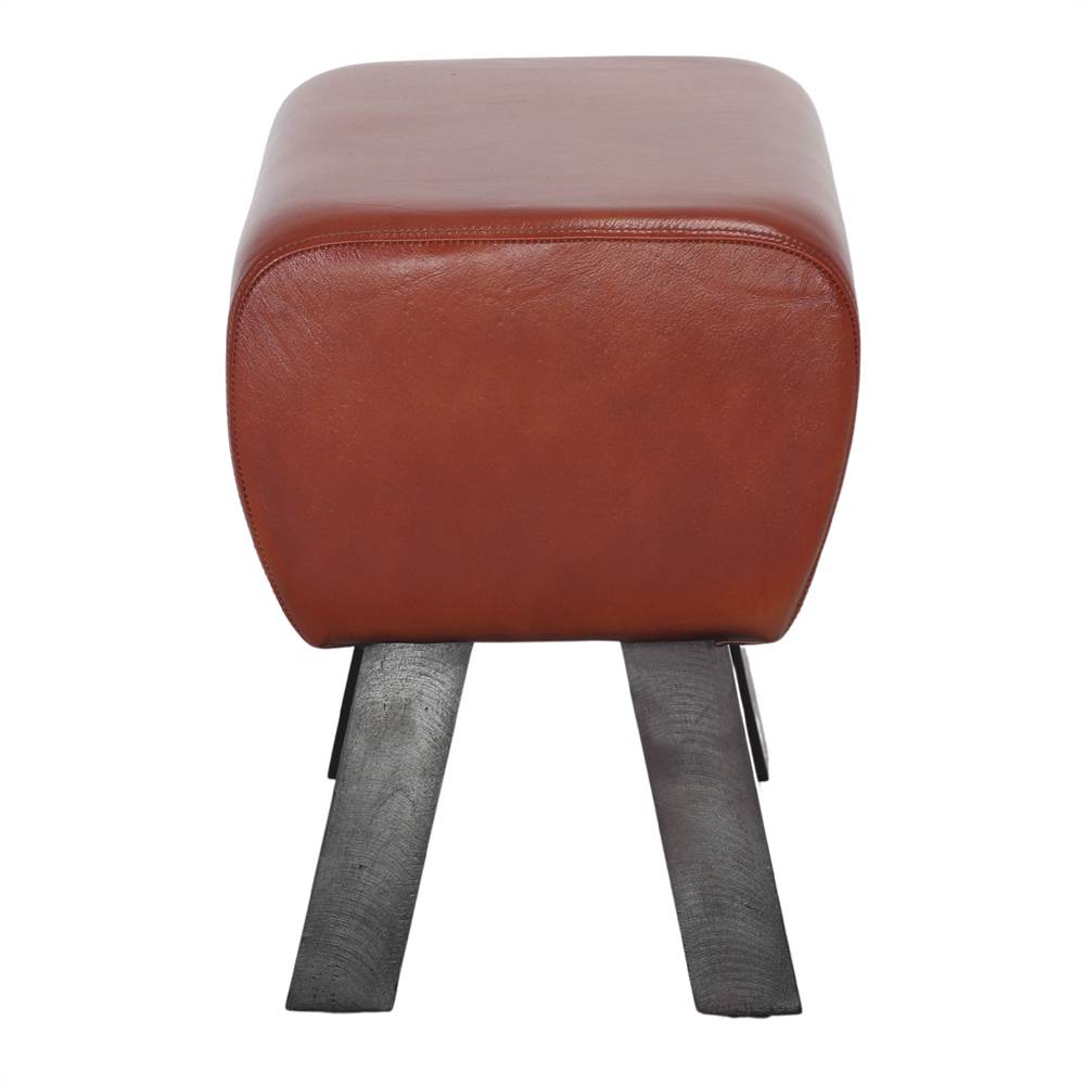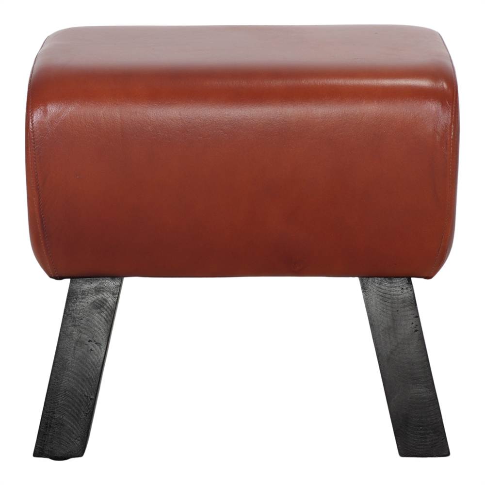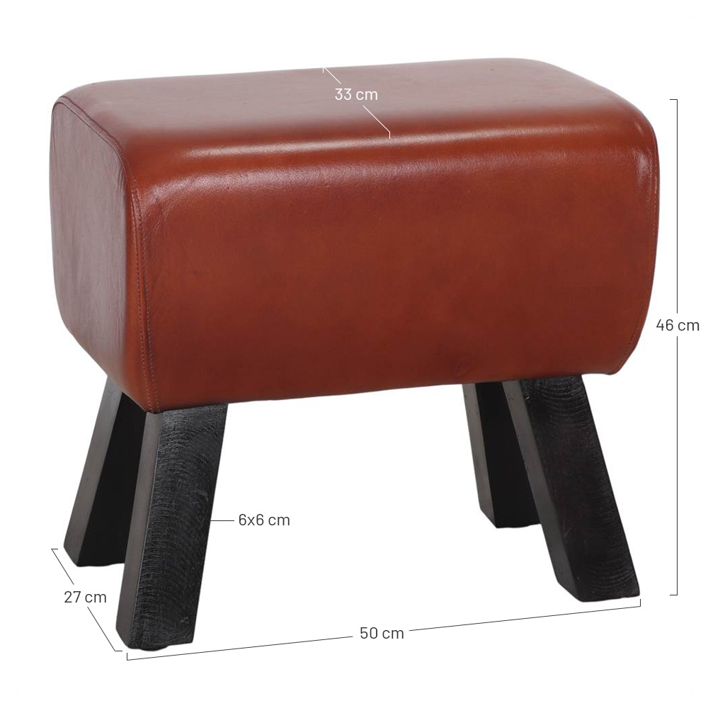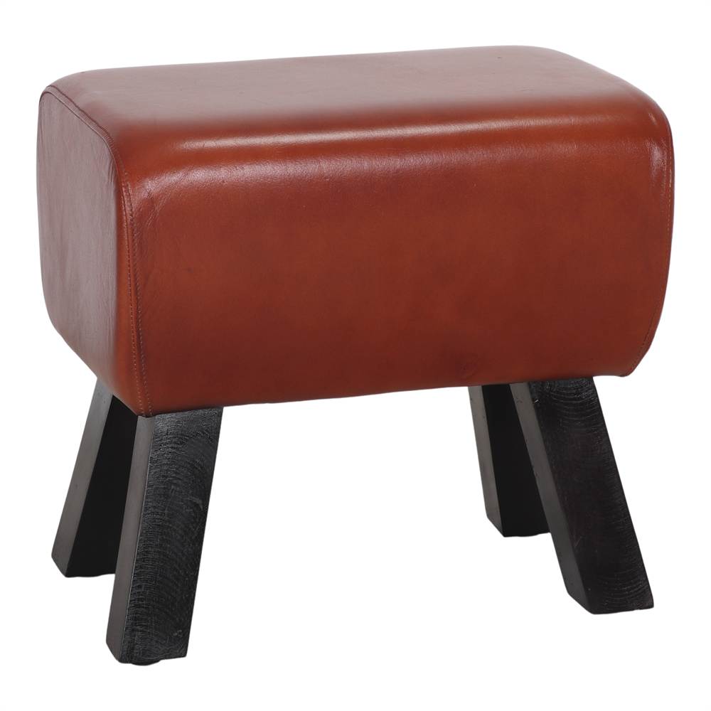 Tabouret bas en cuir Donati, de style rustique et vintage.