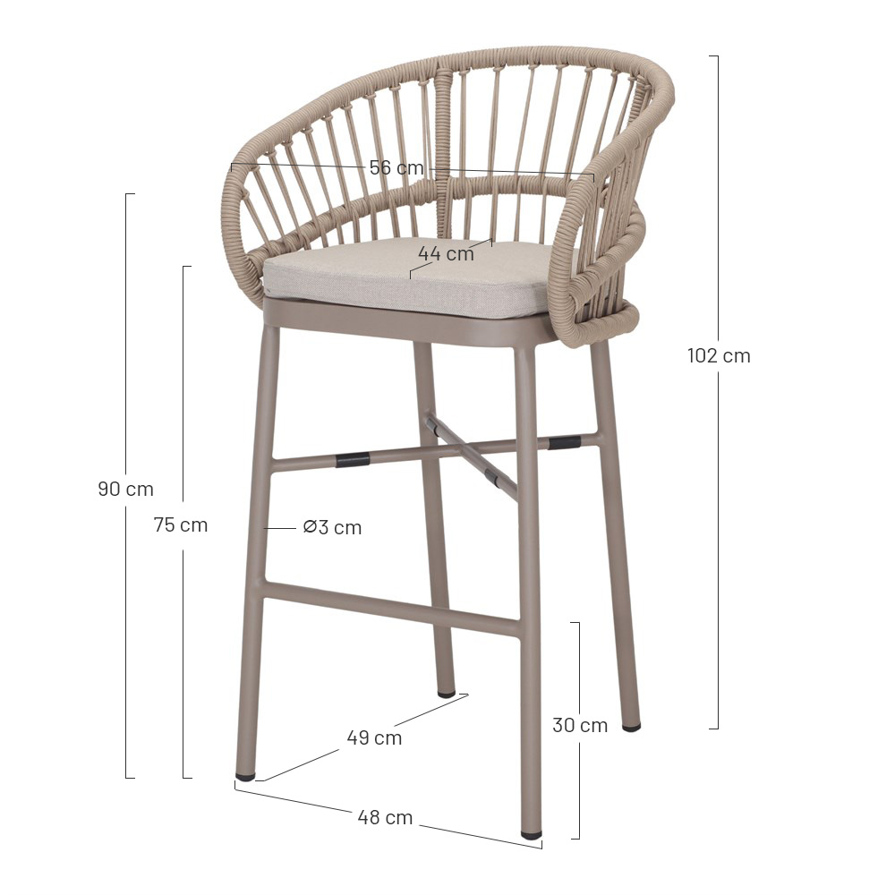 Le tabouret en corde Kleber allie fonctionnalité et design dans un meuble qui évoque le style méditerranéen relaxant. Sa structure tubulaire en aluminium, recouverte d’une peinture de haute qualité, offre une grande résistance aux conditions extérieures, faisant de ce tabouret un choix parfait aussi bien pour l’intérieur que pour les terrasses ou les jardins.