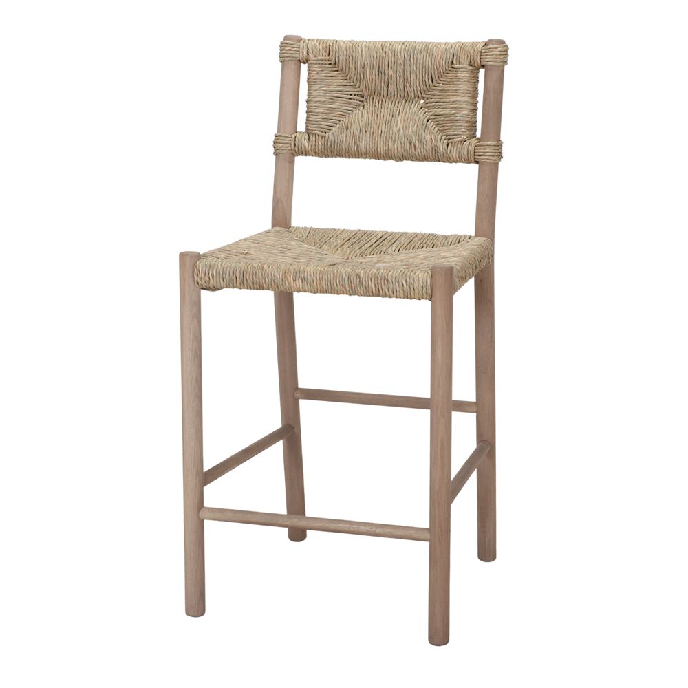 Tabouret de cuisine en bois et fibre marine Verdial, de style méditerranéen.