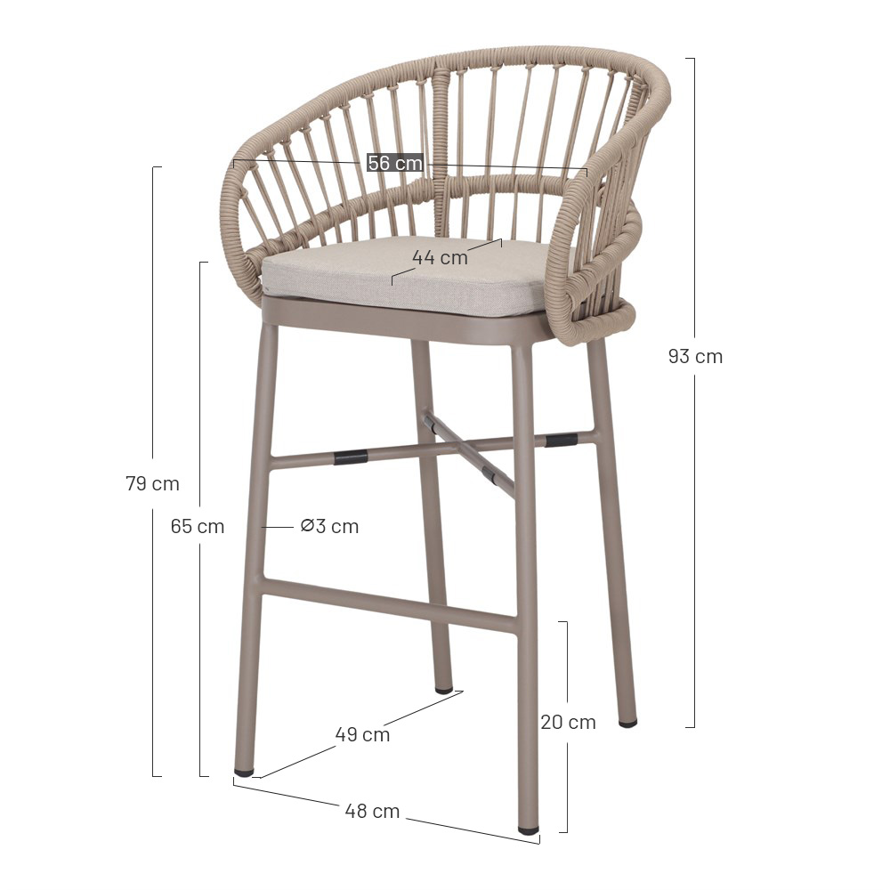 Le tabouret de cuisine en corde Kleber allie fonctionnalité et design dans un meuble qui évoque le style méditerranéen relaxant. Sa structure tubulaire en aluminium, recouverte d’une peinture de haute qualité, offre une grande résistance aux conditions extérieures, faisant de ce tabouret un choix parfait aussi bien pour l’intérieur que pour les terrasses ou les jardins.