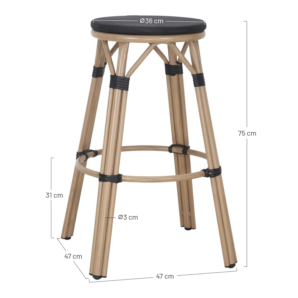 Le tabouret haut d’extérieur Pogoro est une pièce élégante et fonctionnelle qui apporte une touche de style bistrot à tout espace extérieur. Son design allie tradition et modernité, évoquant l’esthétique classique des cafés parisiens avec des matériaux durables et faciles à entretenir. La structure est réalisée en aluminium tubulaire avec une finition raffinée avec effet bambou, qui lui confère non seulement un aspect naturel et sophistiqué, mais garantit également légèreté et résistance aux intempéries. Grâce à ce matériau, le tabouret est durable, stable et facile à déplacer, idéal pour les terrasses, patios et jardins. Le siège en textilène marron offre un confort supplémentaire sans avoir besoin de coussins supplémentaires. Conçu pour résister aux conditions extérieures, ce matériau est respirant, flexible et facile à nettoyer, permettant une utilisation à long terme sans souci. Le tabouret Pogoro est l’option parfaite pour ceux qui recherchent une combinaison entre esthétique, fonctionnalité et durabilité. Son design polyvalent s’adapte à différents styles décoratifs, du rustique au contemporain, ce qui en fait un meubles idéal pour les bars, les cafés ou les espaces résidentiels extérieurs.