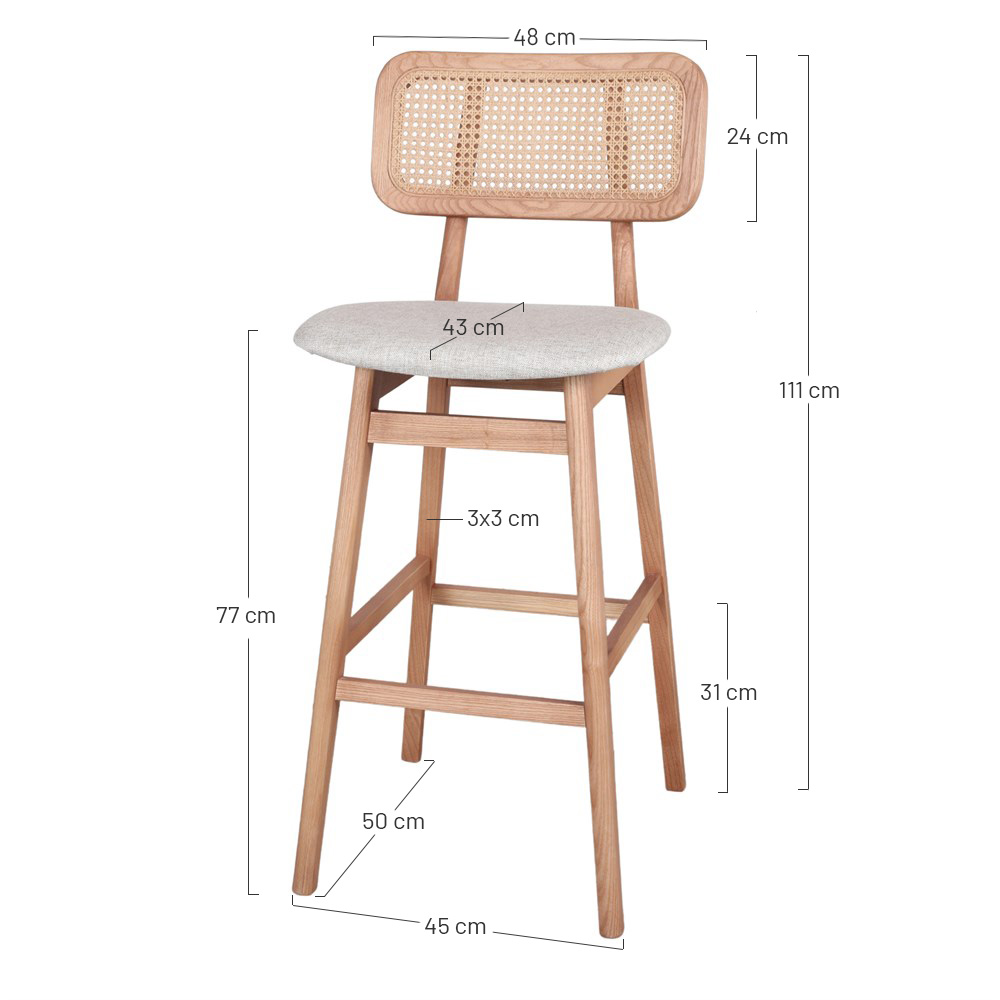 Prenez place dans l’une des plus grandes tendances de la saison avec notre tabouret haut en bois Akemy. Le rotin est sur le point de s’imposer dans tous les intérieurs à la mode et ce n’est pas étonnant : son tissage solide ajoute de la texture au look et a été utilisé dans certains des designs les plus emblématiques de tous les temps. Son association avec le bois et ses courbes confortables et élégantes sont la recette d’une pièce originale qui donnera une touche vintage à votre restaurant ou votre intérieur.