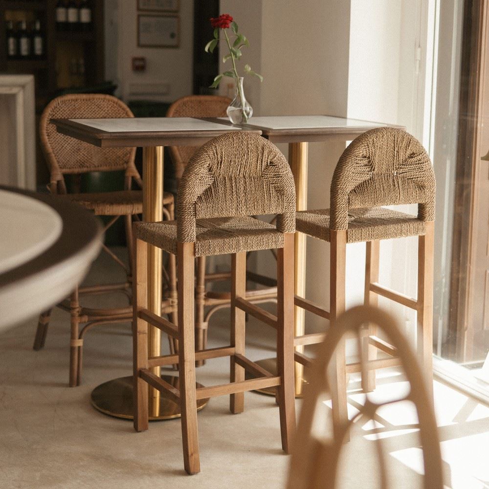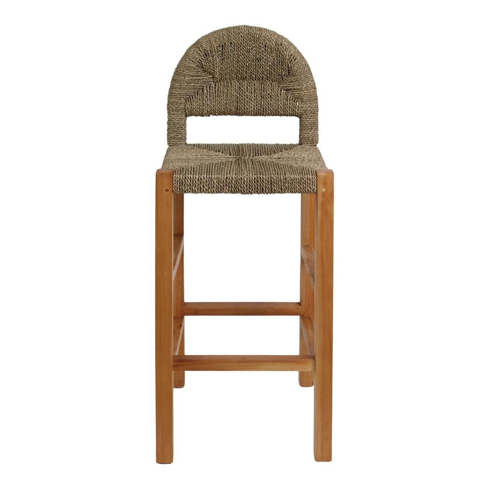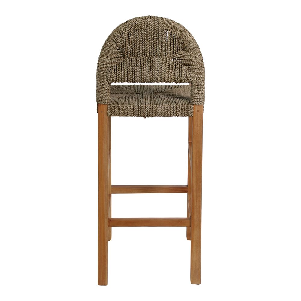 Tabouret haut en bois et fibres marines Sulemani, style méditerranéen.