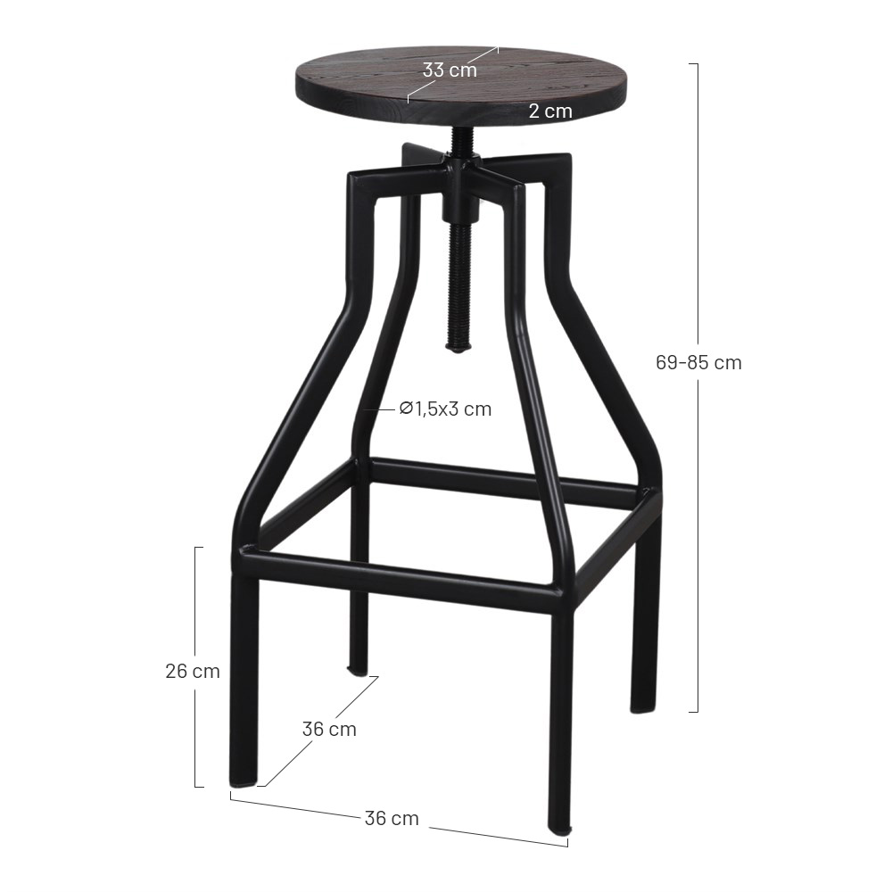 Tabouret haut en métal et en bois Stoner, de style industriel.