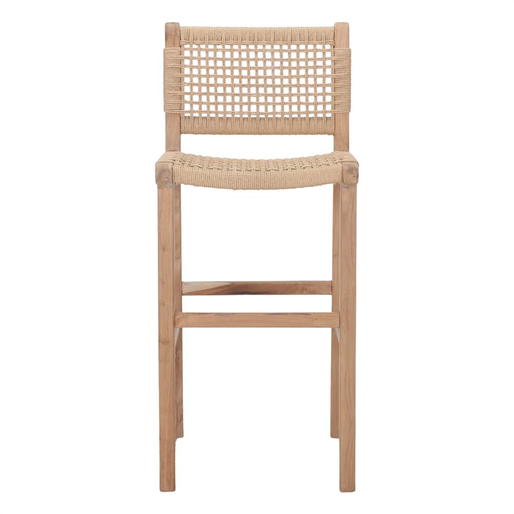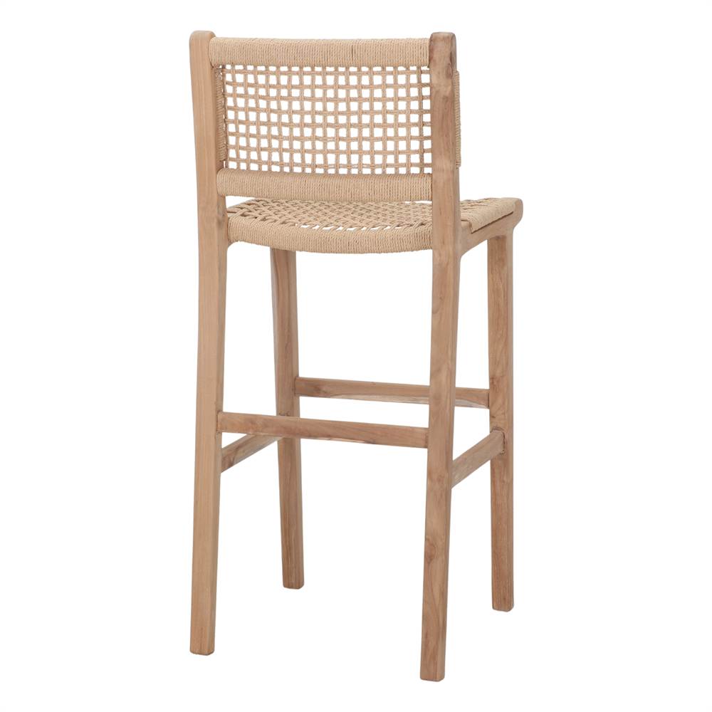 Tabouret haut en bois et corde Morven, style méditerranéen.