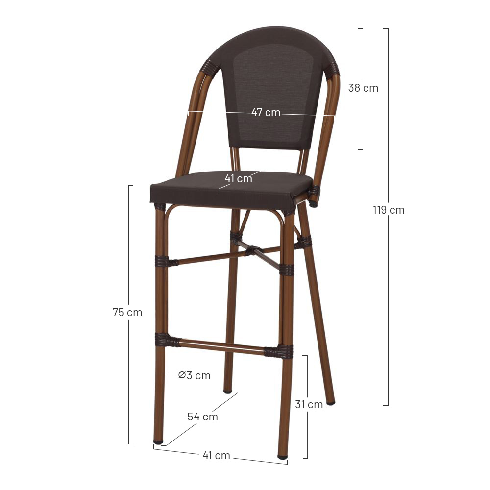 Le tabouret haut d’extérieur Briton incarne le charme du style bistro avec une touche romantique. Sa structure tubulaire en aluminium offre une combinaison parfaite entre robustesse et légèreté, idéale pour résister aux conditions extérieures. La finition imitation bambou ajoute une touche d’élégance naturelle, fusionnant le traditionnel avec le moderne de manière harmonieuse.