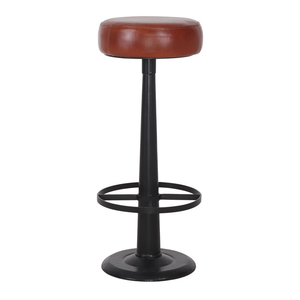 Tabouret haut en métal et en cuir Alexis, de style industriel vintage.