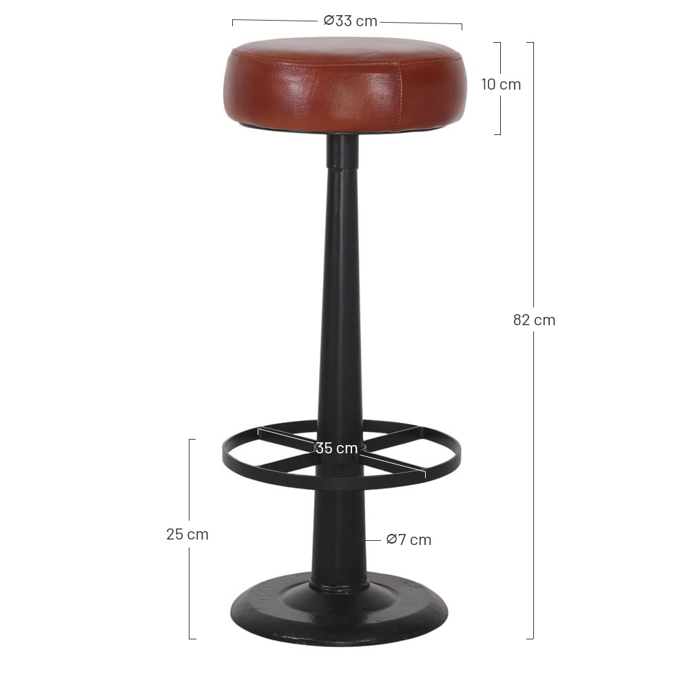 TABOURET HAUT EN MÉTAL ET EN CUIR ALEXIS