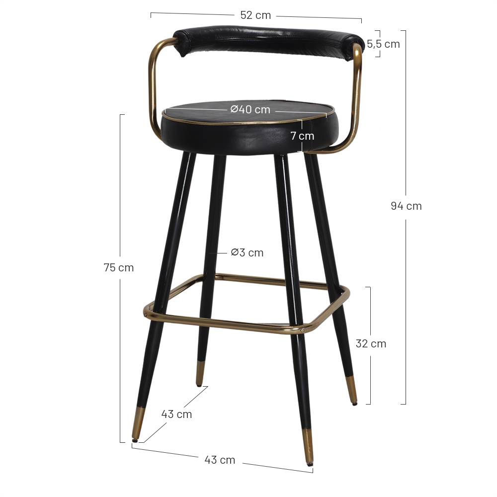Dimensions : 52x48x94 cm | Hauteur d’assise : 75 cm | Assise : ⌀40 cm
