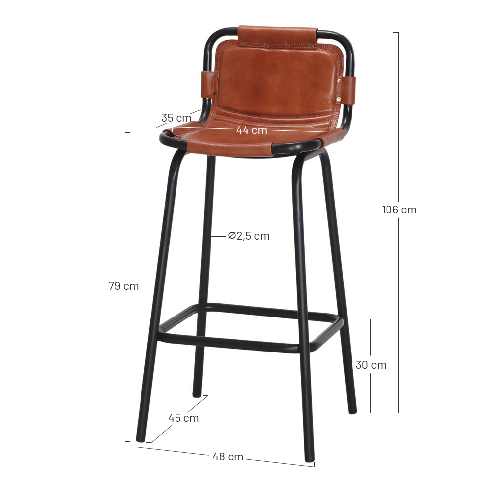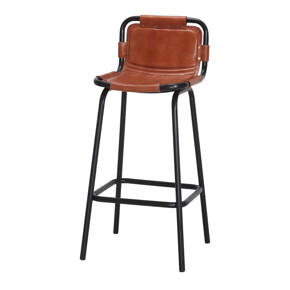 TABOURET HAUT EN MÉTAL ET EN CUIR IGOR