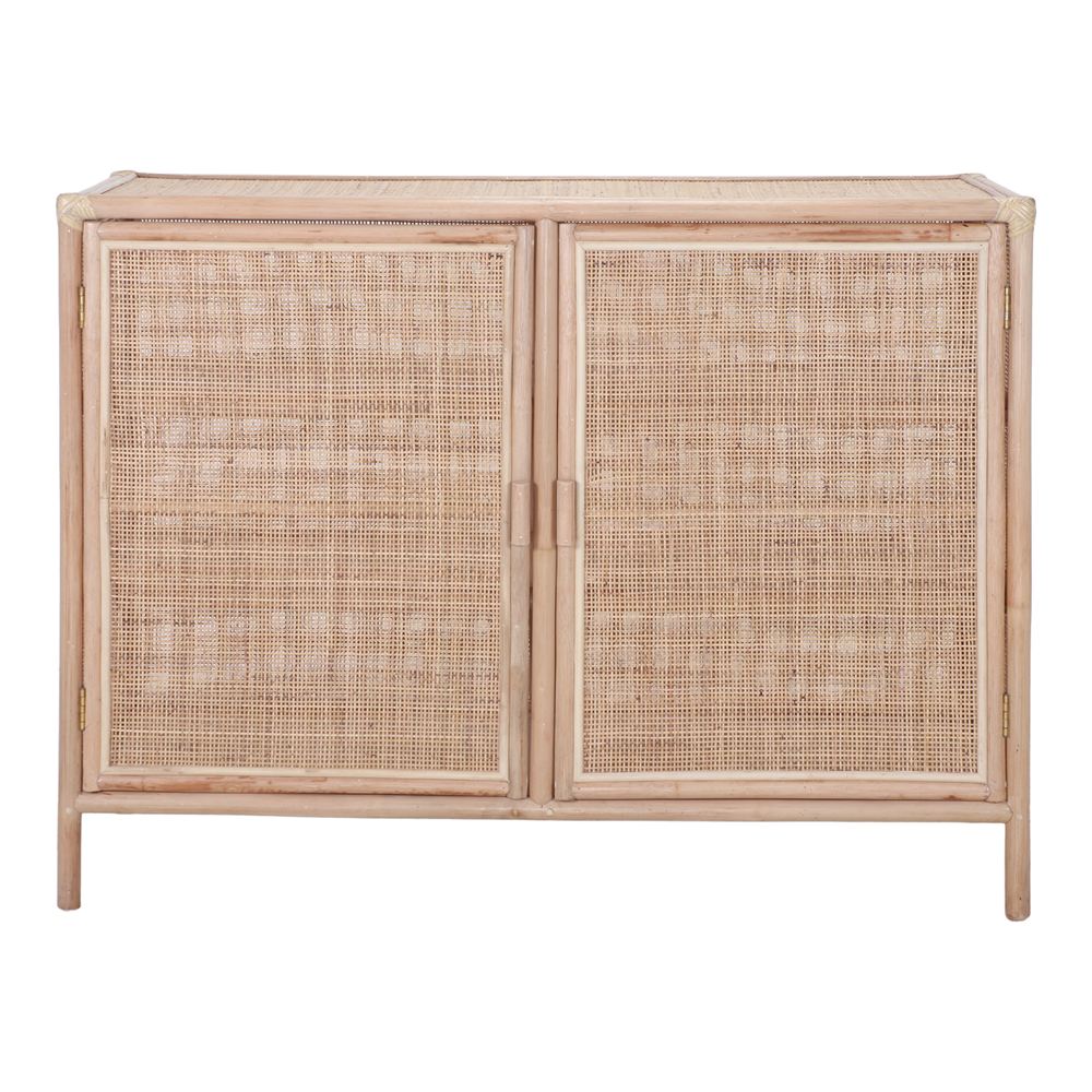 Buffet à 2 portes en bambou naturel avec façades en maille de rotin, type cannage.